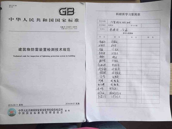 為了推進(jìn)防雷資質(zhì)辦理,為了讓員工盡快熟悉防雷規(guī)范,6月27日下午,公司委派參加外部培訓(xùn)人員在單位進(jìn)行二次內(nèi)部傳達(dá)講解《建筑物防雷裝置檢測(cè)技術(shù)規(guī)范》。